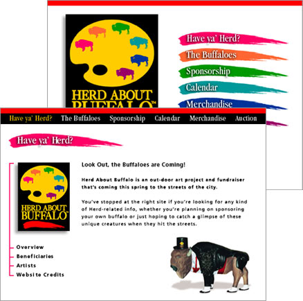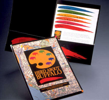 From logo to folder and t-shirts to web site, Flynn & Friends developed a distinct visual identity for this project, which hitched private sponsorship to public art and community pride. The project sold 150 buffalos, 50% more than its initial projection, and raised $1.5 million for its beneficiaries, Roswell Park Cancer Institute and the Burchfield-Penney Art Center.