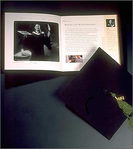 A brochure sewn into an actual graduation cap featured the case message, a rendering of the new administration building, and photos of the campaign leadership.