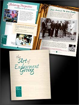 To emphasize the "creative" opportunities inherent in endowment giving, we developed a concept called "The Art of Endowment Giving." The brochure cover was designed to look like a painter's canvas and all of the themes in the brochure related to stages of the creative process.