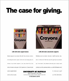Make the case for private giving to a state-funded institution in ads appealing to both alumni and students.