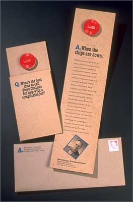 A series of dimensional mailings with a consistent look and message was sent to about 300 businesses. Each mailer concentrated on a particular skill set or experience. A trade publication article triggered by the mailing gave the campaign added value.