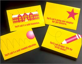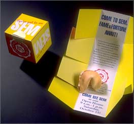 A two-pronged direct marketing campaign-- cubes with "found objects" mailed to 7th and 8th grade girls, and a parallel postcard sent to their parents-- used "You've got to see Sem" as the theme for attracting a record crowd to the school's Open House.