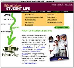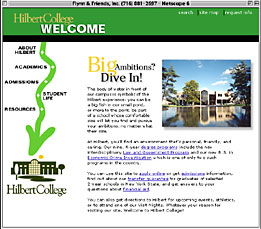 Using the theme "Head for Hilbert" and its visual counterpart of a green, directional arrow, we worked out a simple navigation scheme to communicate the college's entire body of information, from academics to athletics and location to library. The site is template-driven and includes a dynamic database which enables search functions and an online application.