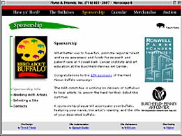 Flynn & Friends designed the basic structure of this site which matches the look of the project's other marketing materials. The home page is a launching point for information on the who, where, when, why, and how of the "herd," from the project's conception and location of each buffalo through the online auction of the sculptures, which benefits two local organizations, Roswell Park Cancer Institute and the Burchfield-Penney Art Center.