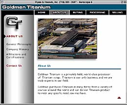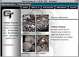 The trick here was to learn the terminology of this company, as well as work closely with them to organize the site according to buying, processing, and selling. The site's "metallic" look reflects Goldman's business as a titanium trader.
