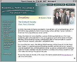 Design a site for a community fundraising organization that enables online giving and at the same time reinforces its unique relationship to Roswell Park Cancer Institute.